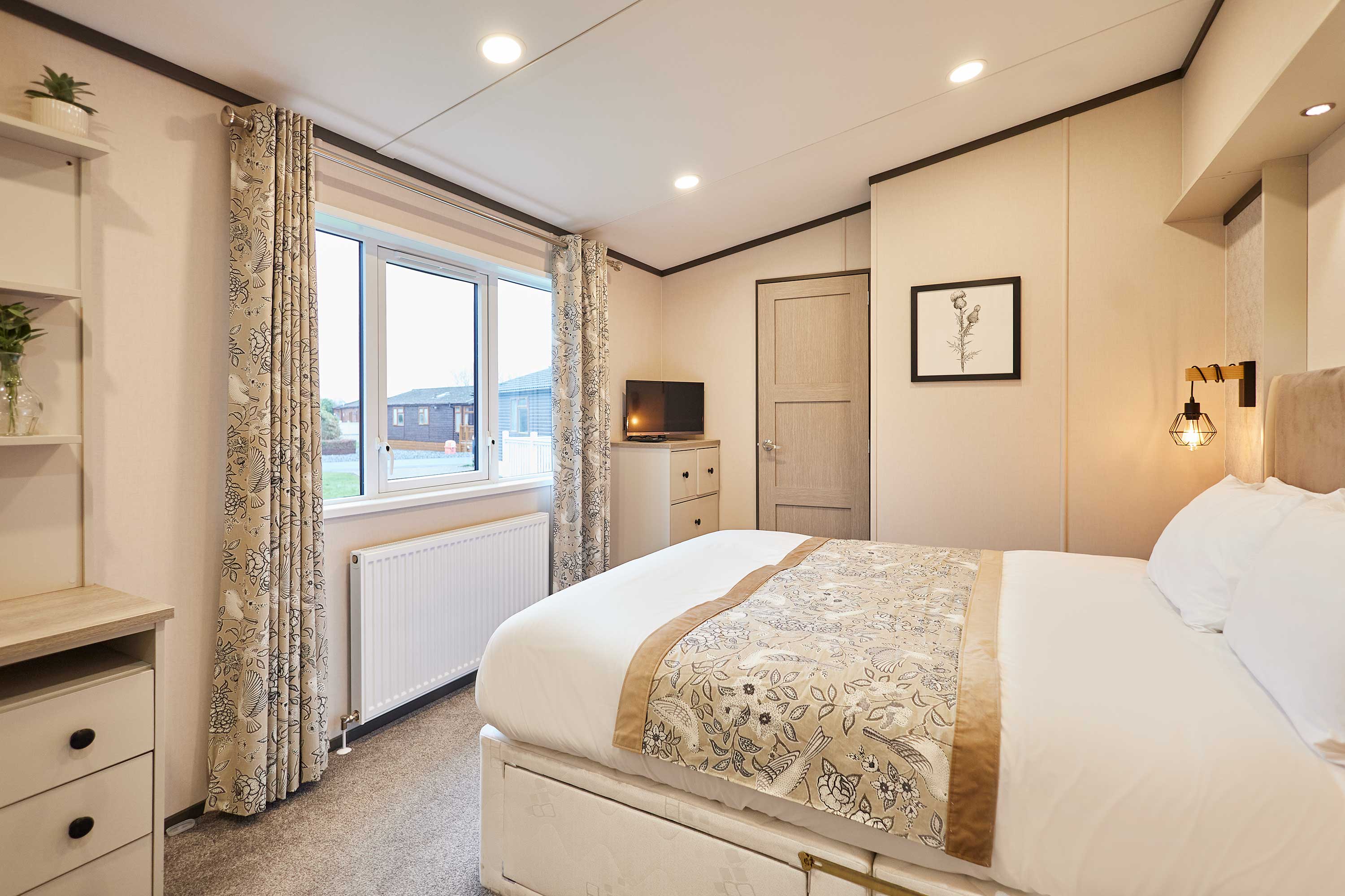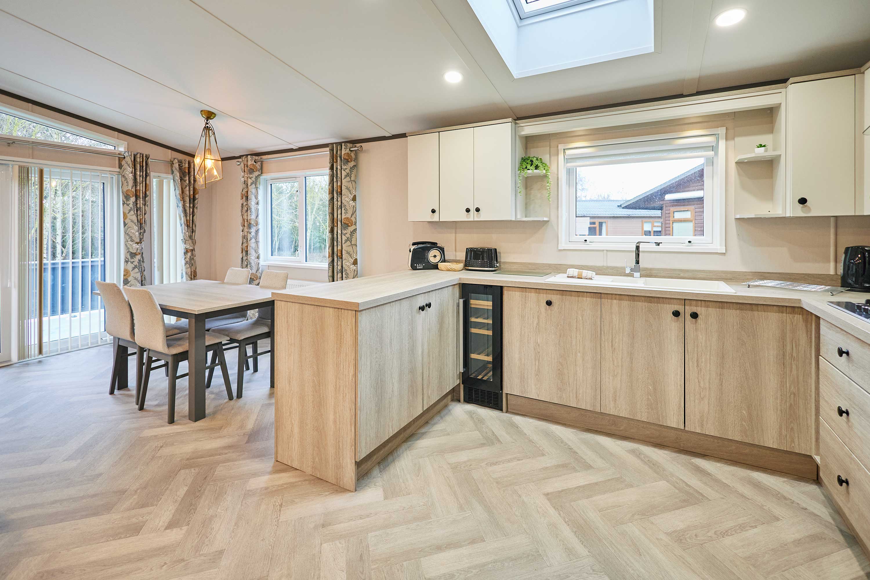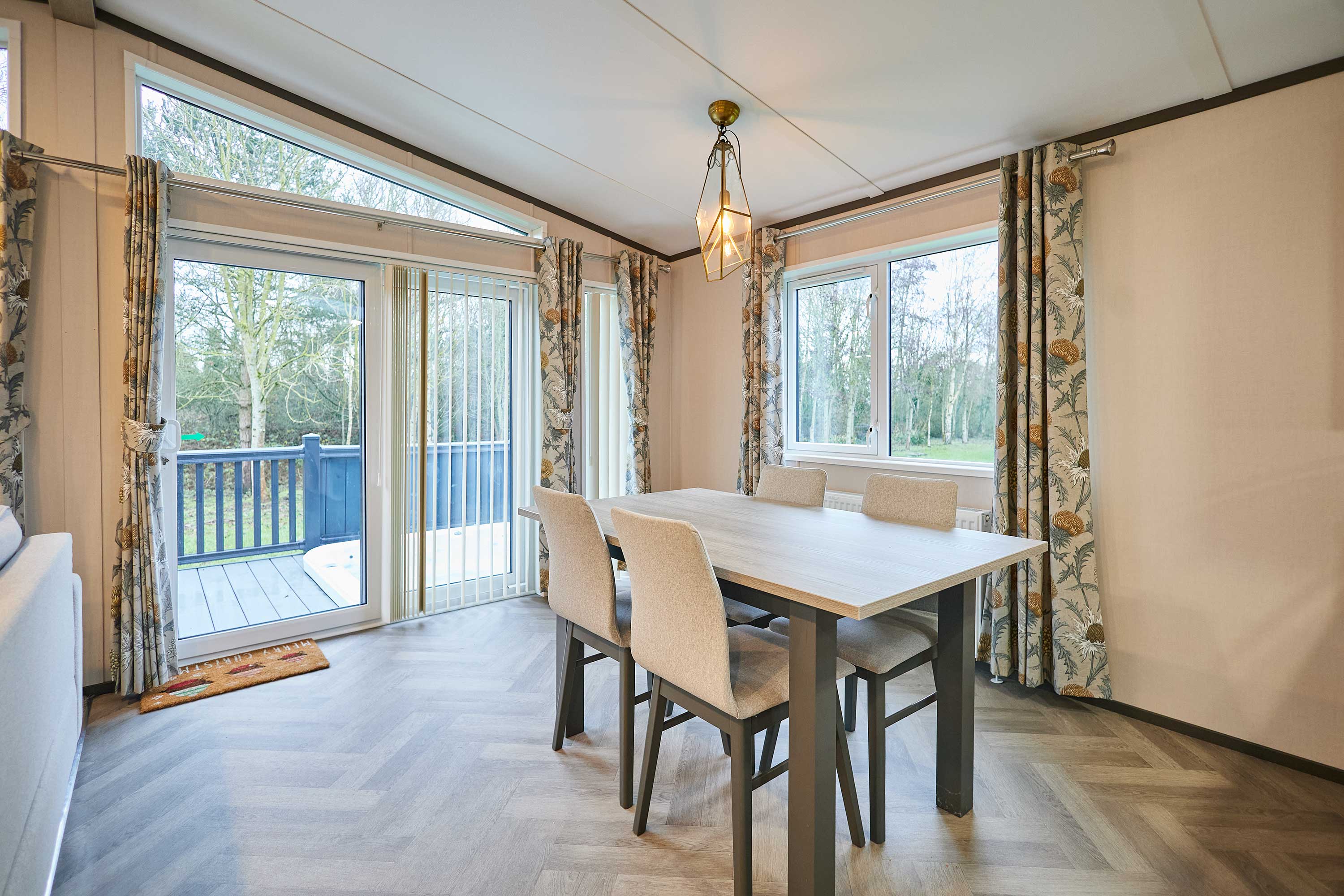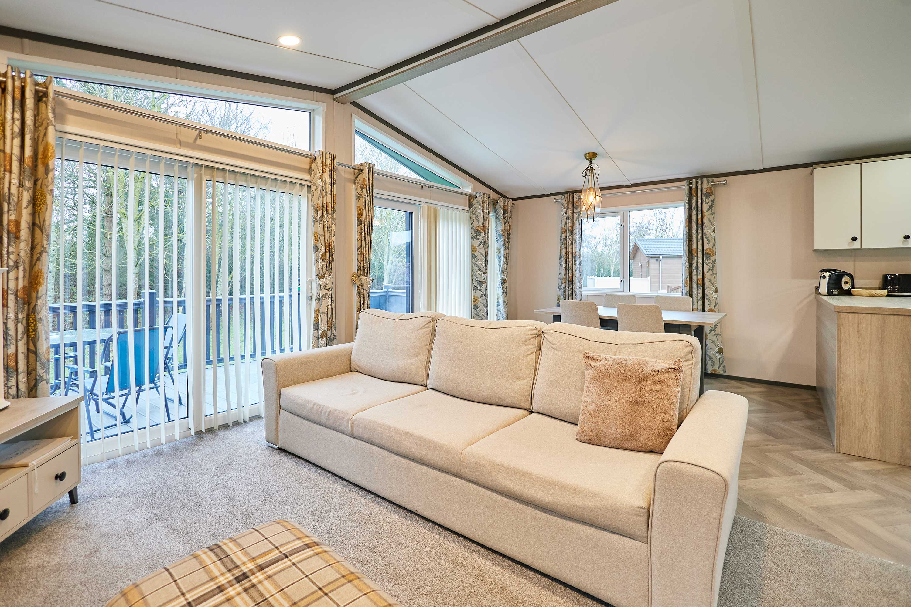 Malton Pines is a modern and welcoming two-bedroom, two-bathroom lodge. Ideal for families, couples, or friends, this stylish retreat combines contemporary comfort with a tranquil countryside setting, offering the perfect base for a relaxing getaway or exploring the scenic North Yorkshire countryside. With the addition of a sofa bed, the occupancy of the lodge can sleep a maximum of six guests. Inside, Malton Pines features a bright open-plan living and dining area, designed for both comfort and practicality. The cosy lounge is perfect for relaxing with a book or watching a film, while the dining area provides a comfortable space for meals or games. Large windows let in plenty of natural light and frame the beautiful lake and countryside views, creating a calm and inviting atmosphere. The fully equipped kitchen includes modern appliances and everything you need to prepare breakfasts, snacks, or evening meals. Both bedrooms are thoughtfully furnished with soft linens and comfortable beds, ensuring a restful night’s sleep. Two modern bathrooms provide showers, baths, and fresh towels, making your stay convenient and stress-free. Outside, Malton Pines boasts a private terrace or patio where guests can enjoy morning coffee, evening drinks, or simply take in the tranquil surroundings. On-site parking adds convenience, while the quiet rural location allows for a peaceful and restorative escape.