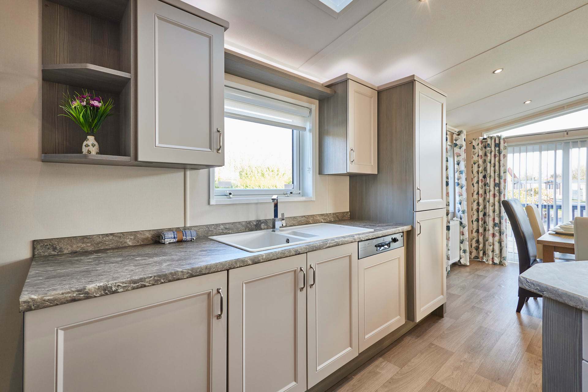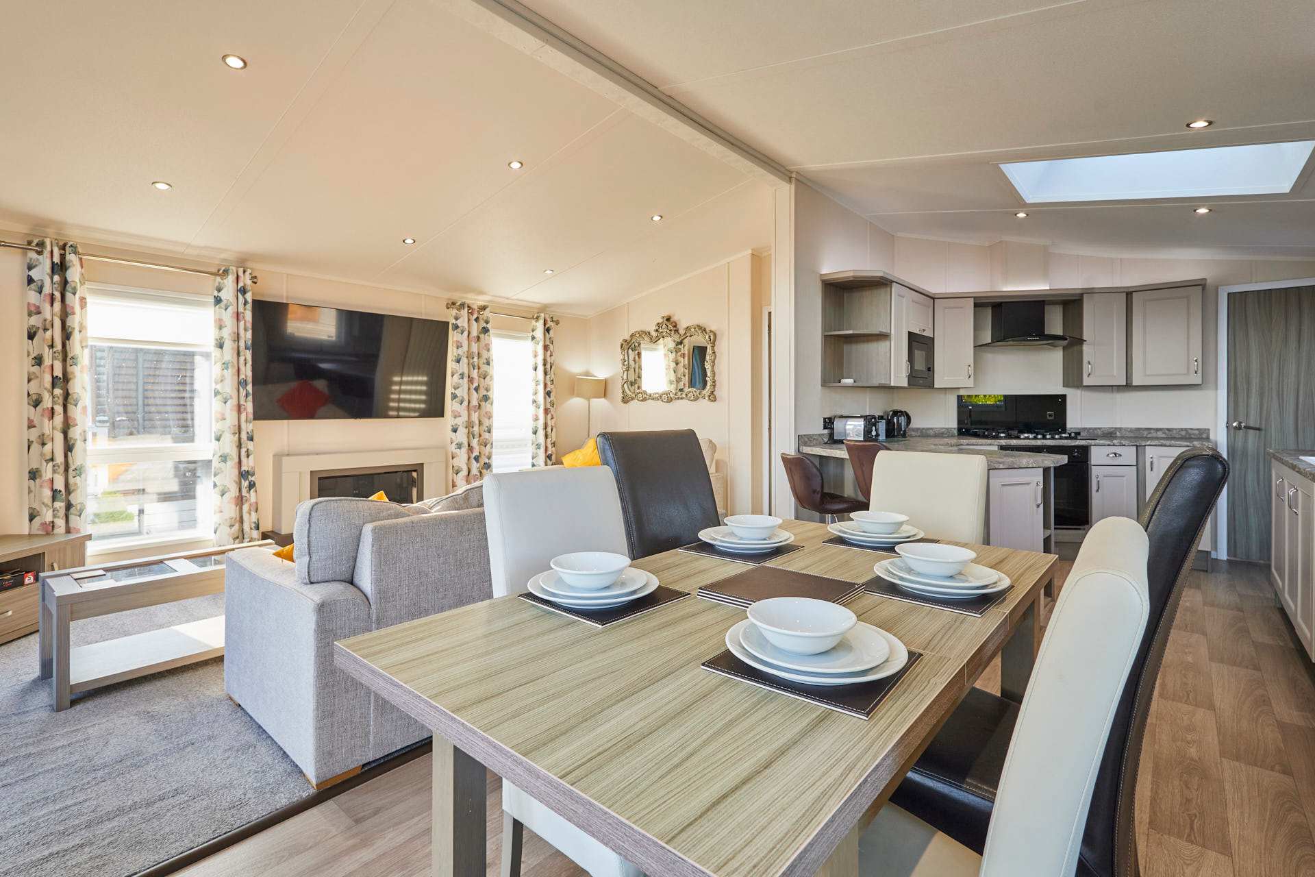 Penny Lodge is a modern and inviting two-bedroom, two-bathroom countryside retreat. . Perfect for families, couples, or friends, the lodge combines contemporary comfort with a tranquil rural setting, providing an ideal base for relaxing getaways or exploring the beautiful surrounding countryside. Inside, the open-plan living and dining area is bright and welcoming, featuring a cosy sofa, a dining space for meals or games, and large windows framing views of the lake and countryside. The fully equipped kitchen includes modern appliances and everything you need for preparing breakfasts, snacks, or dinner at home. The lodge offers two stylish bedrooms, designed for comfort and restful nights, alongside two modern bathrooms complete with showers, baths, and fresh towels. Outdoor space includes a private terrace or patio, perfect for enjoying the scenery or unwinding with a morning coffee. Additional amenities include on-site parking and a quiet, rural location while remaining within easy reach of Malton’s shops, restaurants, and local attractions. Penny Lodge is a charming and comfortable retreat, ideal for those looking to relax, recharge, and enjoy the peace and beauty of North Yorkshire.