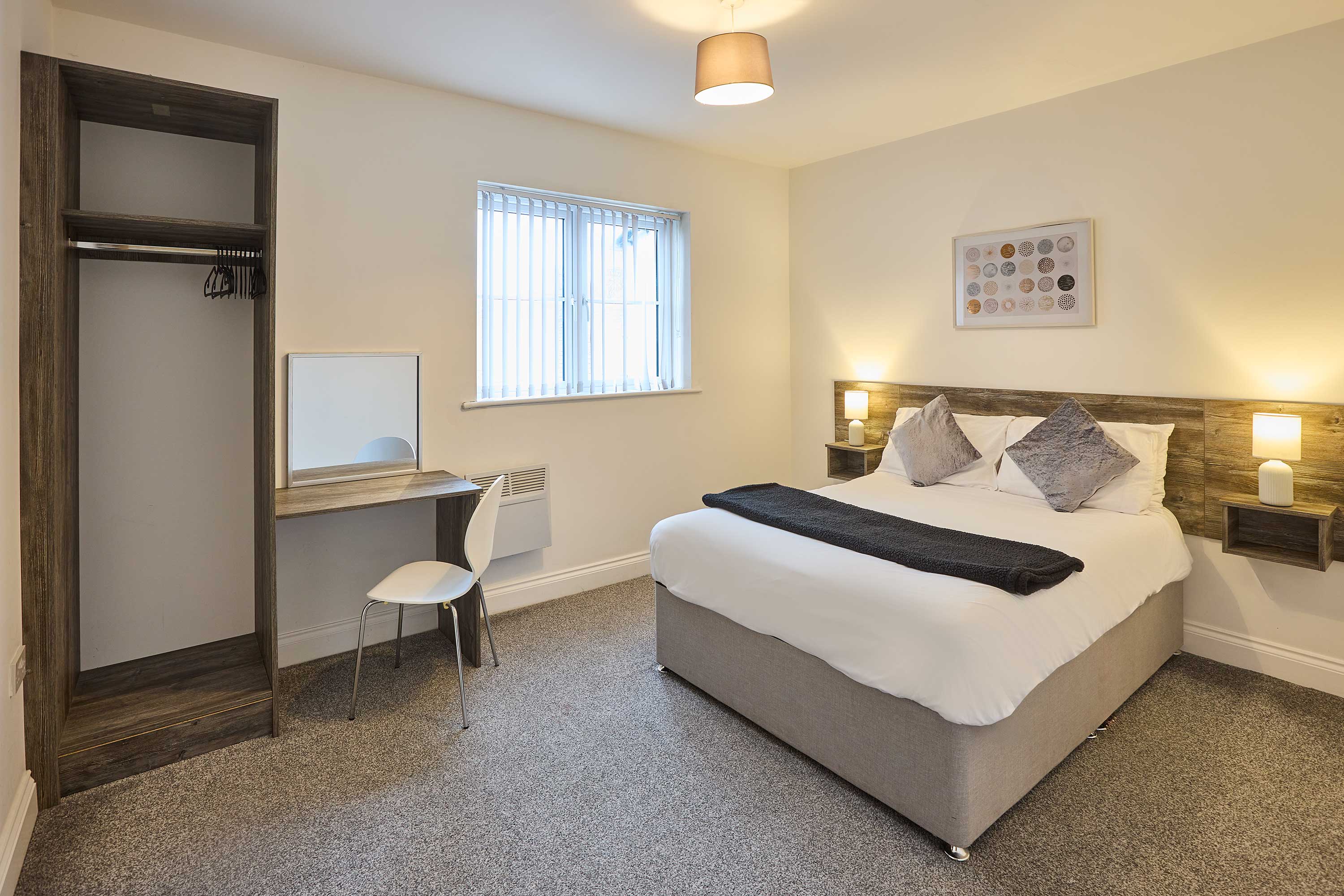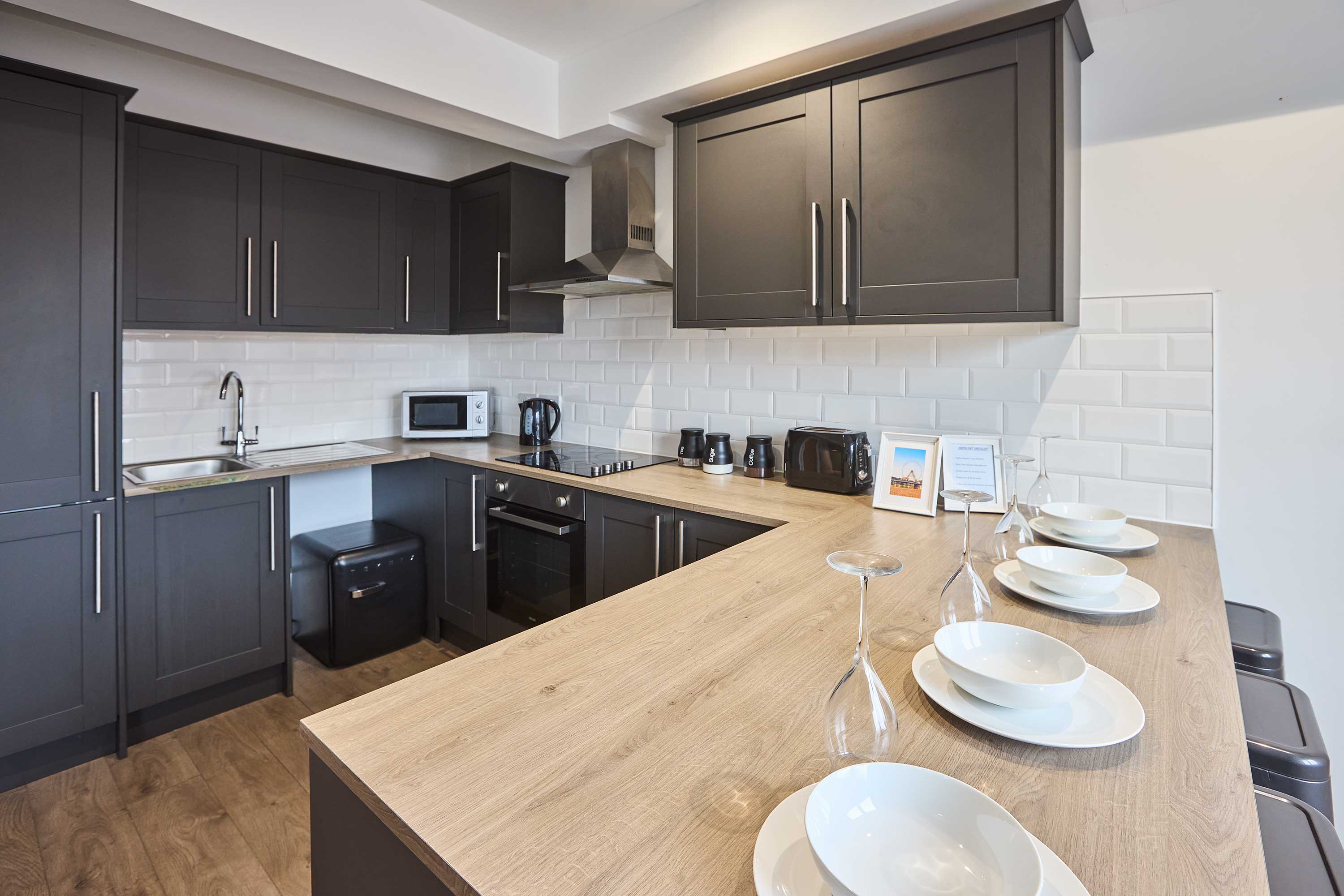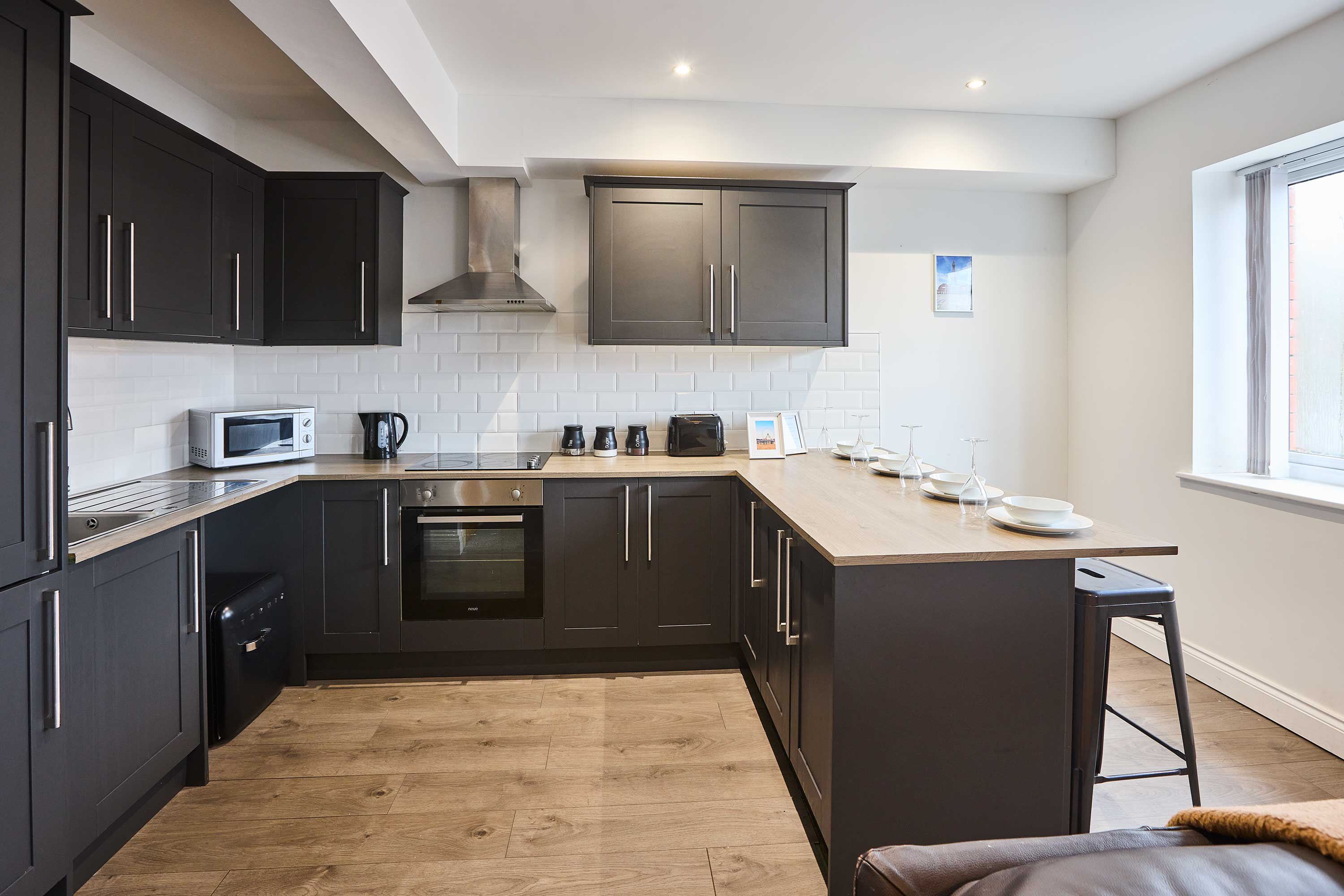 Enjoy a stylish stay in this modern open-plan apartment, perfectly situated in the heart of Blackpool. The sleek kitchen comes fully equipped with all amenities and features a breakfast bar, ideal for casual dining or morning coffee. The living area is bright and inviting, with large windows, comfortable seating, and a TV for relaxing evenings. The apartment offers two spacious double bedrooms, ideal for families or friends, and a large bathroom complete with both a shower and a bath for ultimate relaxation. Located just minutes from Blackpool’s iconic seafront, piers, entertainment venues, shops, and restaurants, this apartment puts the best of the town on your doorstep. With easy access to trams and trains, you can explore the wider Lancashire coast with ease. This contemporary apartment combines comfort, convenience, and style—making it the perfect base for your Blackpool getaway.