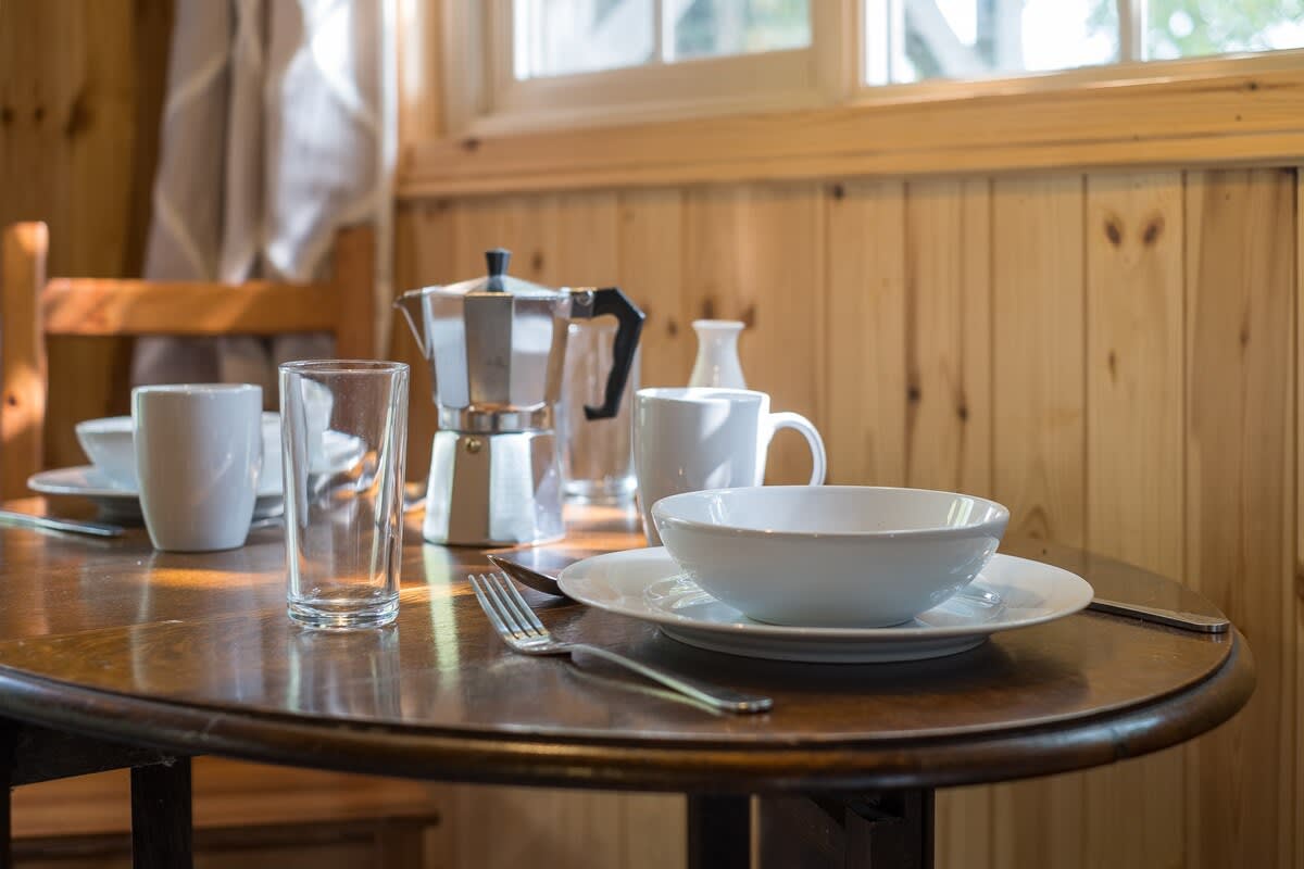Beautiful cabin, brilliant location however was left very dirty. Hair in the shower, stains on the carpet, half drunk mcdonald’s on the side and a very mouldy french press!! There’s one fork (no chopsticks) no pepper and although i didn’t get to use the french press all the coffee and sugar left was complete rock solid and honestly gross. I did very much enjoy my stay just a little disappointing as i paid a £75 cleaning fee.