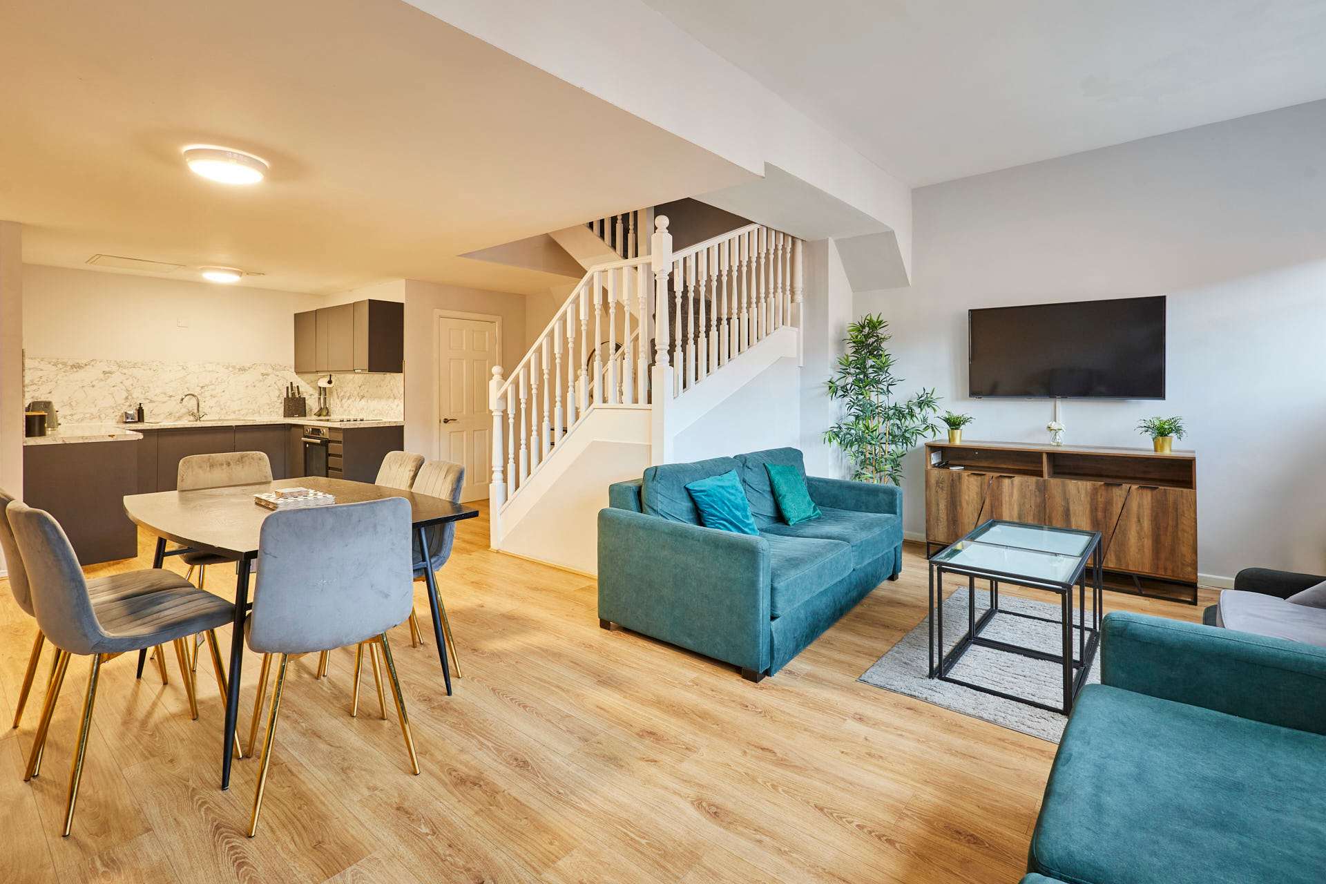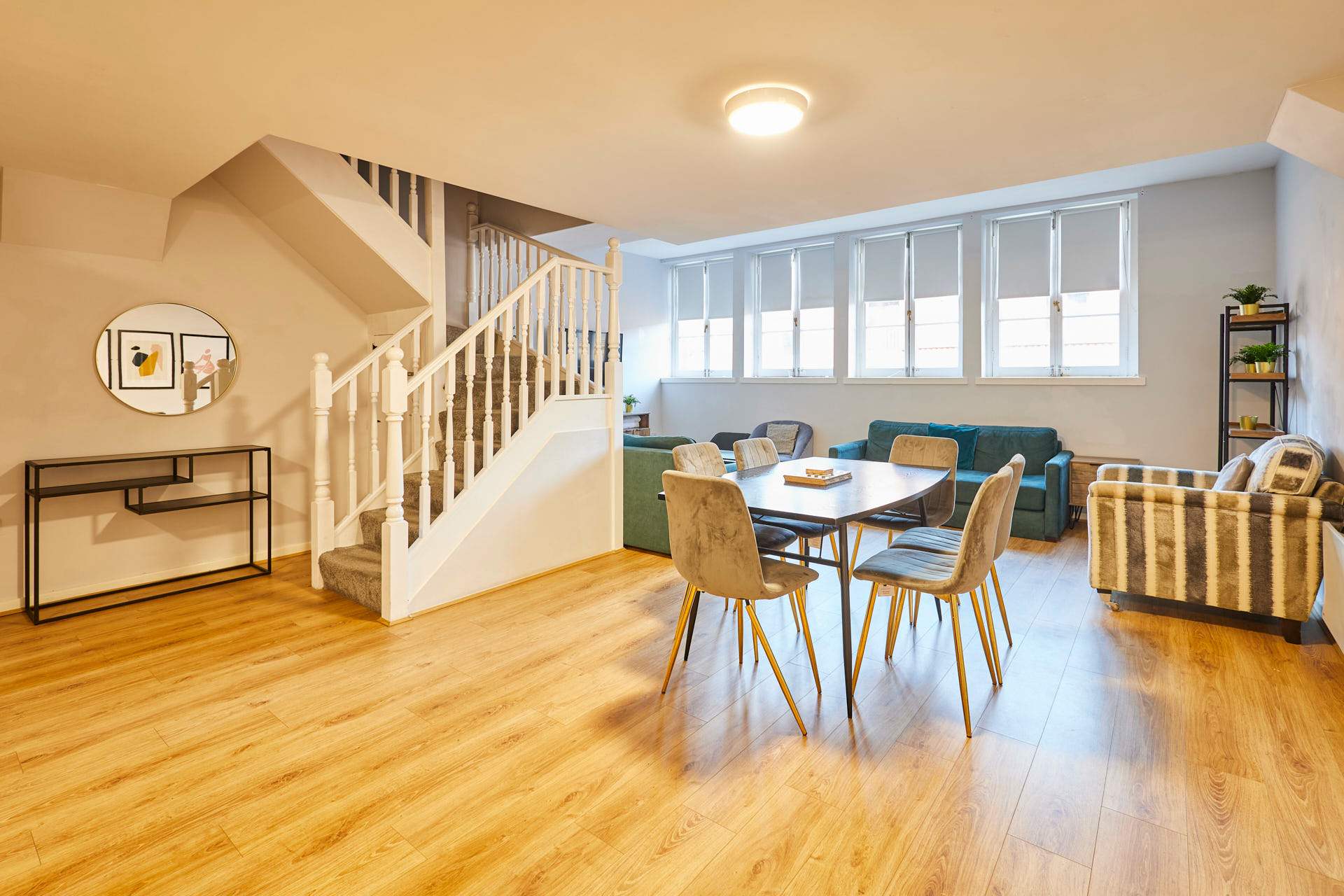 Step into Apartment 8, Stanley Street a stylish and modern retreat in the heart of Liverpool. This thoughtfully designed apartment offers a bright, airy space where comfort meets contemporary style, making it the perfect base for your city stay. The open-plan living, dining, and kitchen area provides a welcoming environment to relax, whether you’re enjoying a film on the flat-screen TV, catching up on reading, or sharing a meal with friends or family. The dining area, filled with natural light from large windows, creates an inviting spot for breakfast, coffee, or a relaxed dinner. The fully equipped kitchen features everything you need for your stay, including a dishwasher, fridge, freezer, oven, hob, microwave, kettle, and toaster, making cooking simple and enjoyable. At the end of the day, the bedrooms offer a peaceful escape, complete with double beds, soft linens, and elegant décor. Blackout curtains ensure a restful night’s sleep, while ample storage makes it easy to settle in and feel at home. Modern, comfortable, and perfectly located, Apartment 8 on Stanley Street combines style, convenience, and a true sense of Liverpool living an ideal home base for your city adventure.