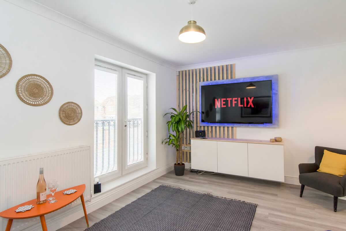 Clean and bright space as on photos. However, didn’t meet our expectations for a group of 6 adults. The dining table only seats 4 so we had to use the desk chair and our own camping chair for meals. One of the beds is not double bed size. There were only very small pots and pans so we had to cook food in batches. Also, the TV only works with Netflix, no other apps can be opened and no channels. Garden not a nice space and outdoor furniture wasn’t clean. We enjoyed our stay but felt that the usability of the place hadn’t been considered.