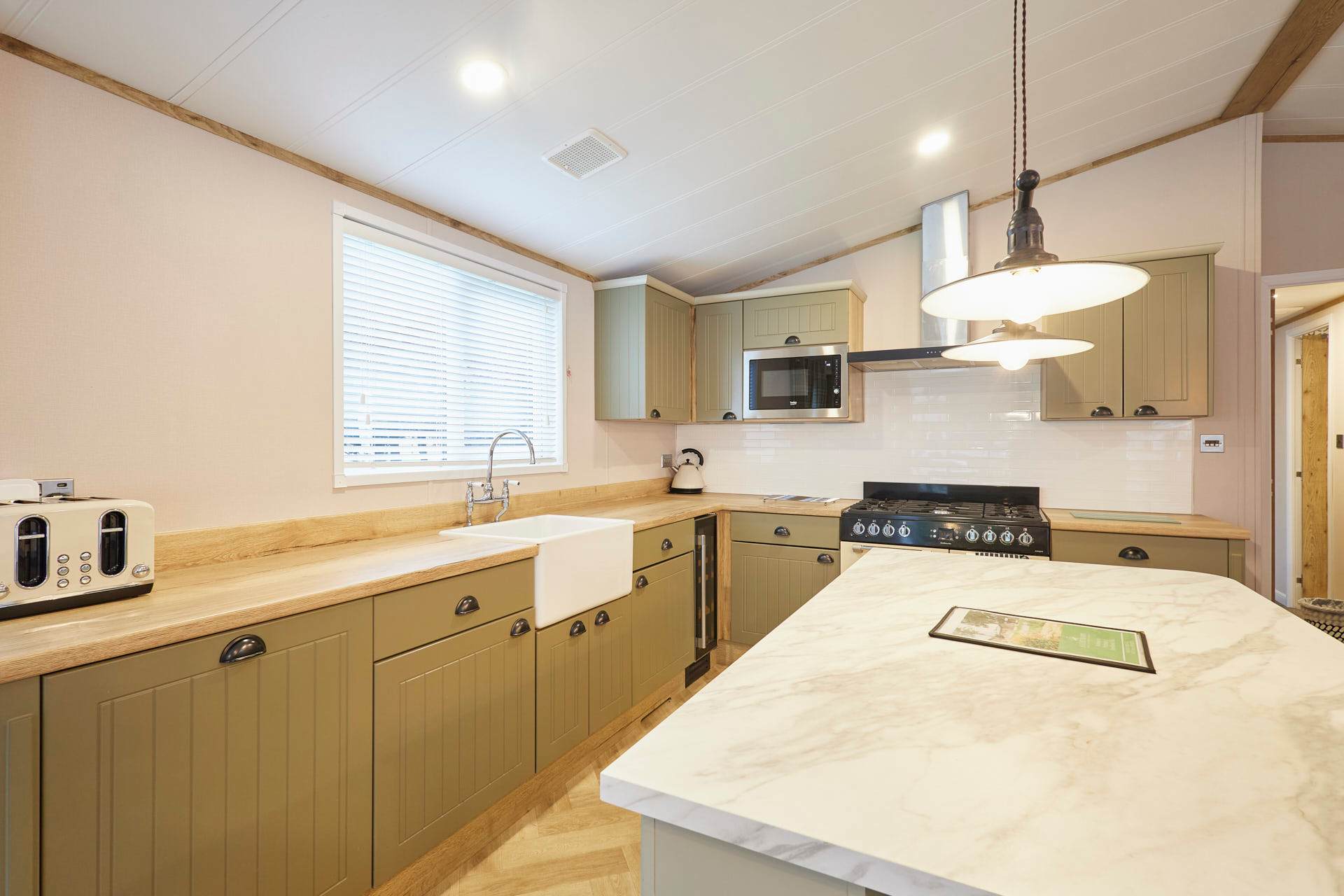 Hawthorne Lodge offers a welcoming countryside retreat set within the peaceful surroundings of Allerthorpe Golf & Country Park. Designed with comfort and relaxation in mind, this beautifully finished two bedroom, two bathroom lodge sleeps up to four guests and is ideal for couples or small families looking to escape the everyday and unwind in style. The open plan living area is light and spacious, featuring a fully equipped kitchen with modern appliances, a dining area perfect for relaxed meals, and a comfortable lounge complete with a cosy indoor fireplace. The soft neutral tones and natural textures throughout create a warm and calming atmosphere, perfect for enjoying quiet evenings after a day exploring the local area. Step outside onto your private terrace where you’ll find a luxurious hot tub and outdoor seating area. Whether you’re enjoying morning coffee in the sunshine or a peaceful soak under the stars, this is the perfect space to relax and take in the fresh country air. The master bedroom offers a comfortable double bed and en suite, while the second bedroom features twin beds and access to a second modern bathroom. The lodge is also pet friendly, ensuring your four legged companions can enjoy the getaway too. Guests at Allerthorpe Golf & Country Park can also enjoy access to the on site Bar & Grill, nine hole golf course, and beautifully maintained walking routes, creating the perfect balance of relaxation and recreation during your stay.