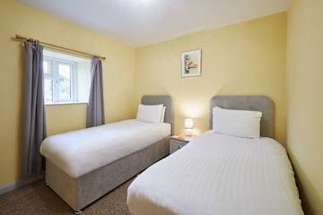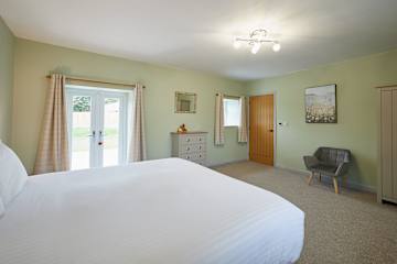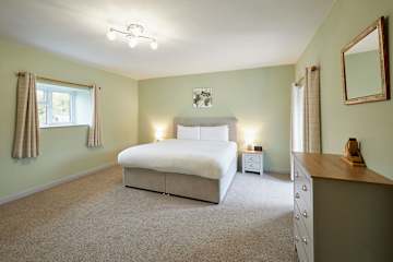 All three bedrooms are thoughtfully designed to provide a restful night’s sleep. The super-king, double, and twin rooms each feature calming colour palettes, plush bedding, and premium linens, creating a tranquil atmosphere throughout. Wake up to sweeping countryside views that capture the beauty and serenity of the surrounding landscape.