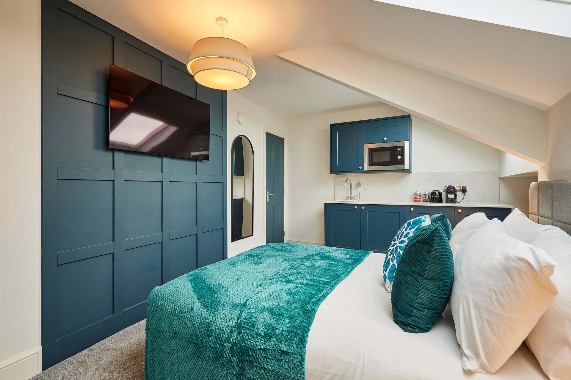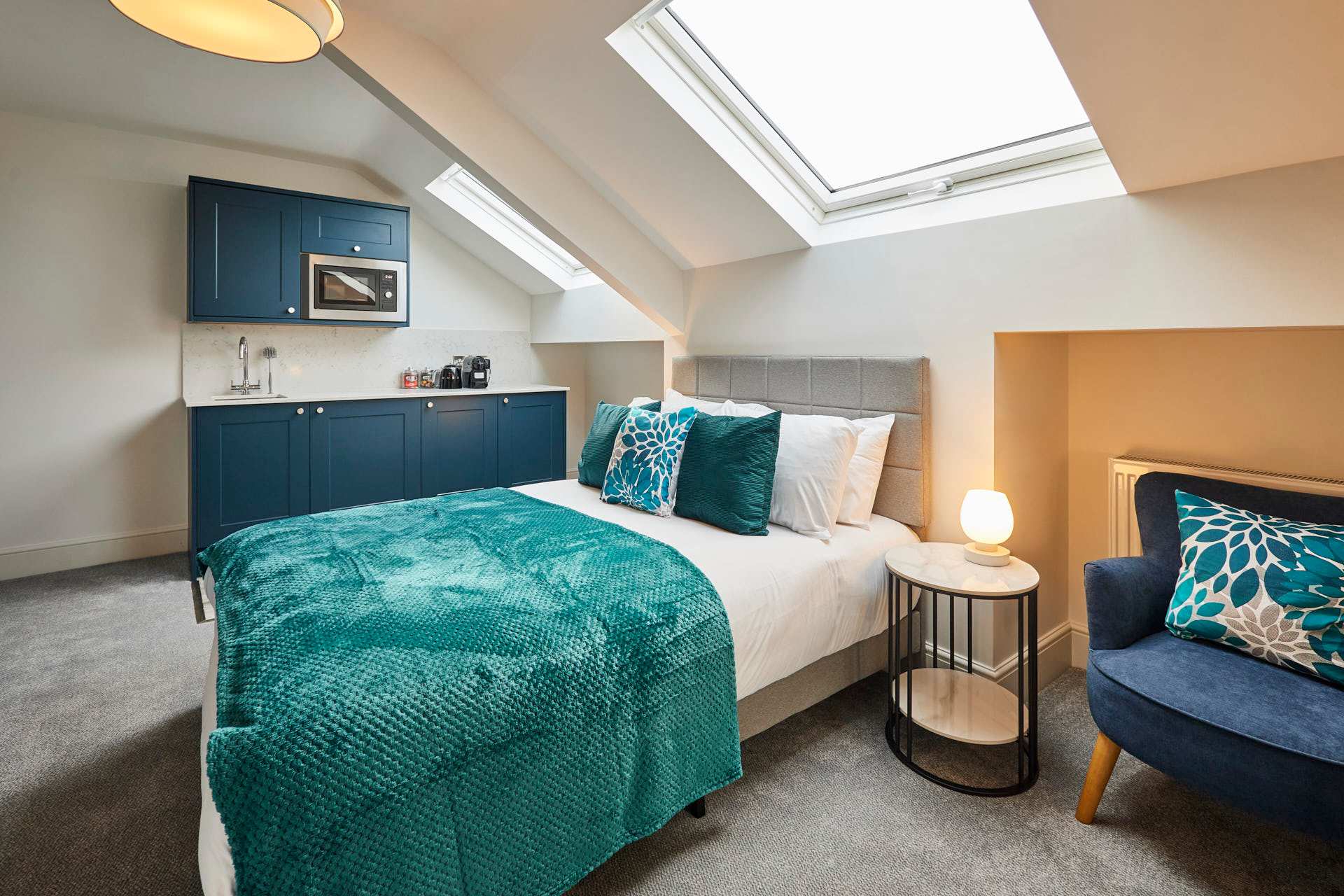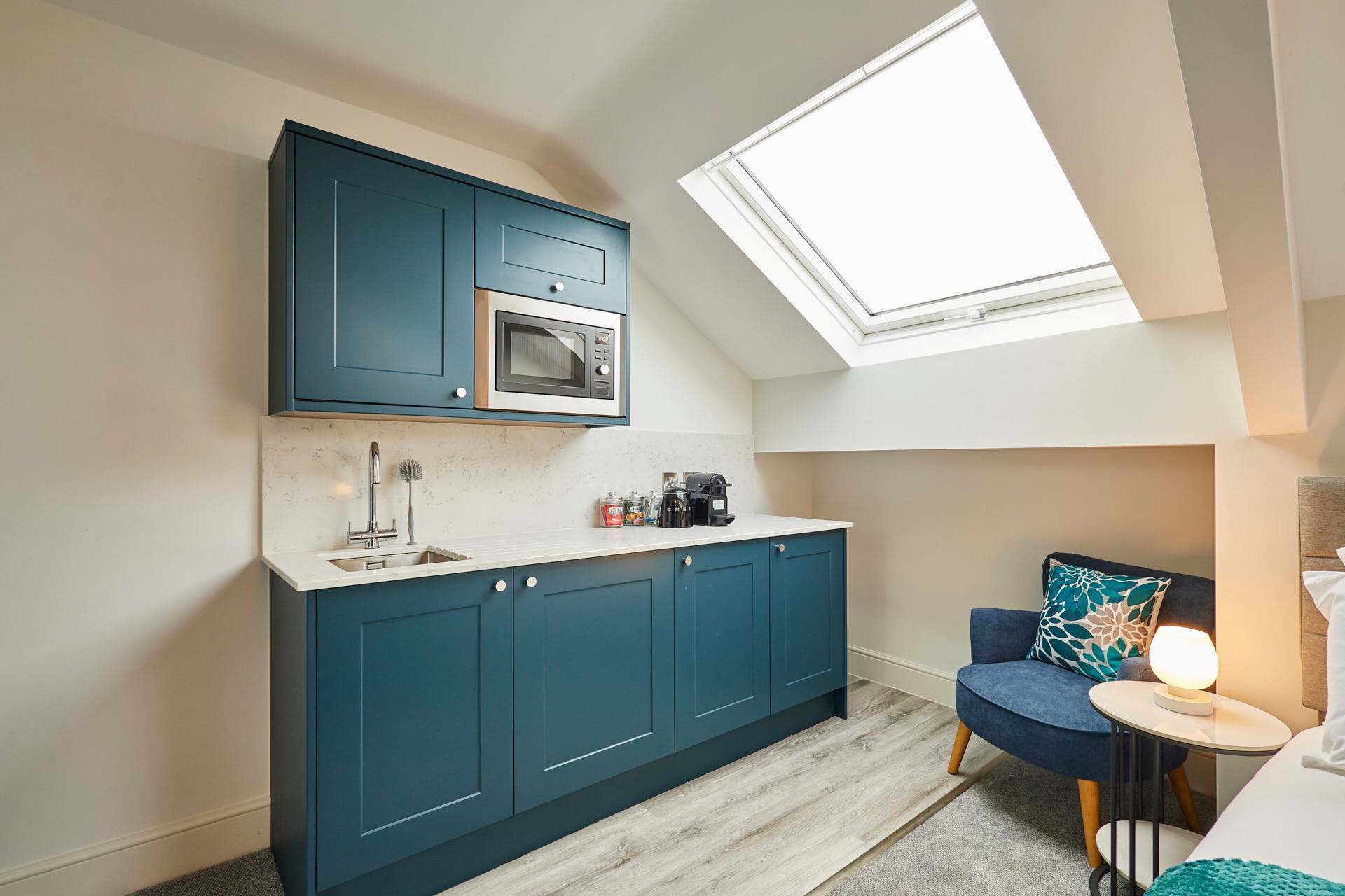 Apartment 10 at The Langley Apartments is a compact, thoughtfully designed studio offering everything you need for a comfortable stay. Bright and inviting, the space features two skylight's that fill the apartment with natural light, enhancing the open and airy feel. Despite its cosy size, it includes a fully equipped small kitchen, perfect for preparing meals with ease, and a spacious, modern bathroom fitted with high-quality fixtures for convenience and comfort. Neutrally decorated with subtle coastal touches, the apartment maintains a fresh, welcoming atmosphere, creating a relaxing retreat after a day exploring Whitby and the surrounding area. Apartment 10 combines practical functionality with stylish design, providing a charming, well-appointed space ideal for short or longer stays.