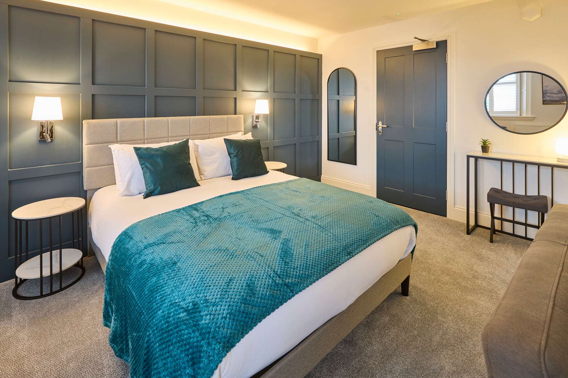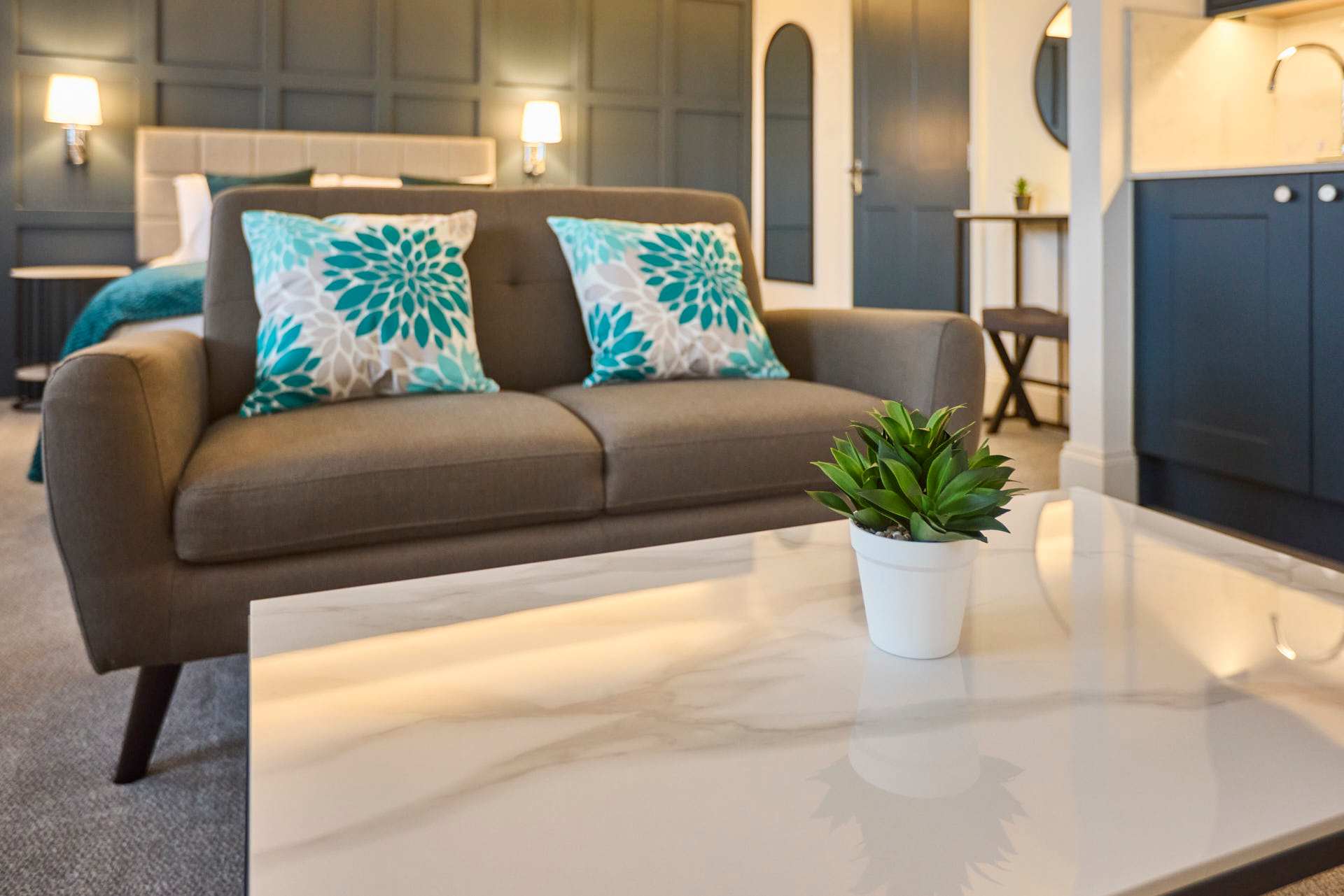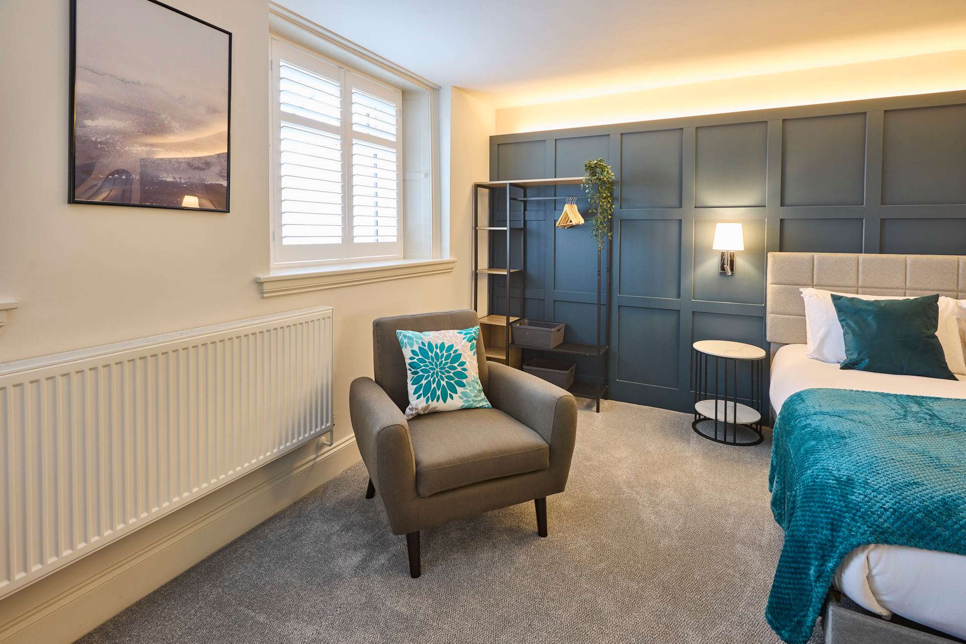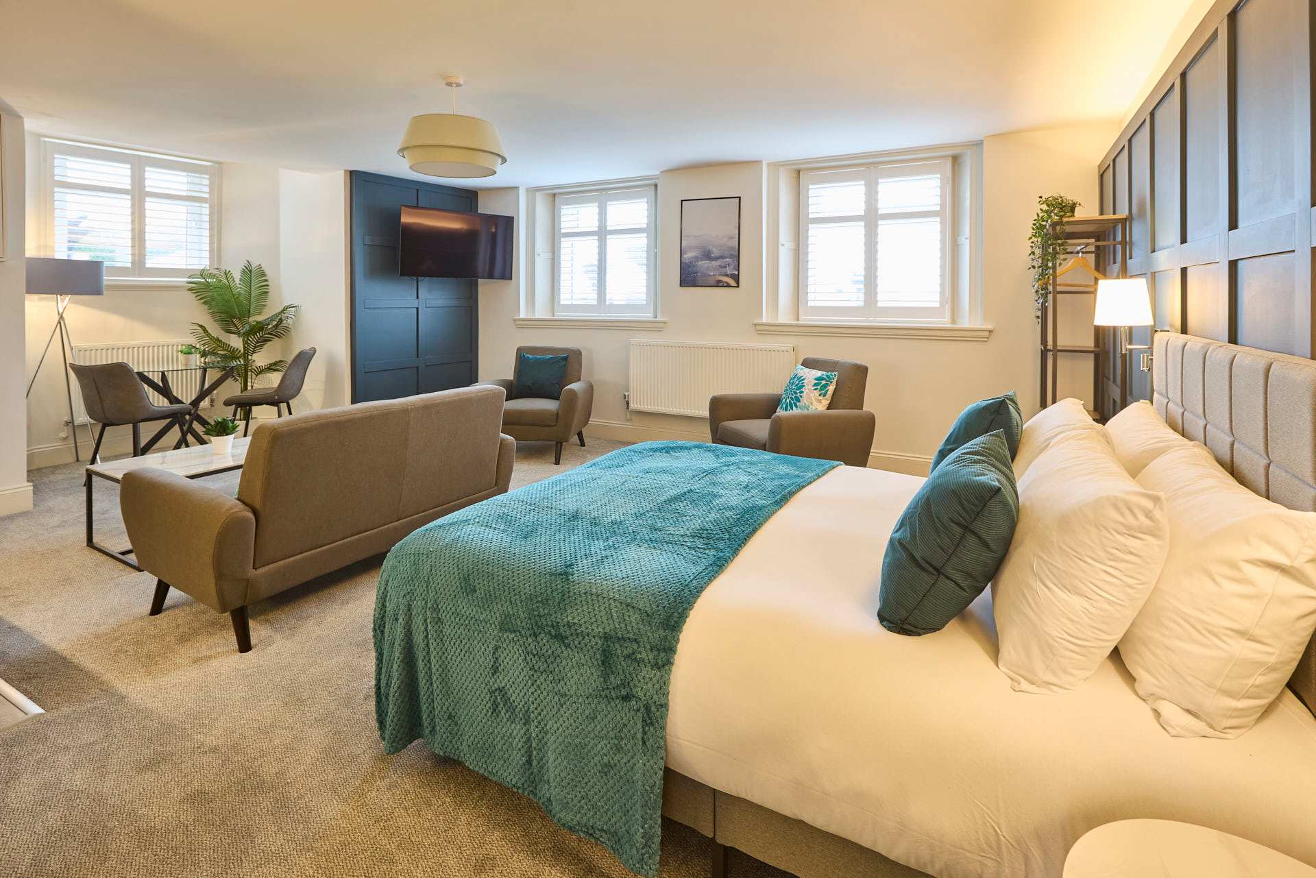 Apartment 12 at The Langley Apartments is a large, bright studio that has been newly refurbished to an exceptional standard. Surrounded by windows, the apartment is flooded with natural light, creating a fresh and airy atmosphere. Neutrally decorated throughout, it is enhanced by subtle coastal touches that bring a sense of calm and relaxation. A feature panel wall behind the bed adds character, while a wall-mounted flat-screen TV provides modern entertainment. The open-plan layout maximises space, making it perfect for unwinding after a day exploring Whitby and the local area. High-quality finishes and contemporary fixtures are evident throughout, from the sleek kitchenette equipped with modern appliances to the stylish bathroom, complete with a practical walk-in shower. Thoughtfully selected décor, inspired by the nearby coastline, adds warmth and charm without compromising the clean, modern aesthetic. Apartment 12 offers a serene and spacious retreat, combining high-standard refurbishment with timeless coastal appeal.