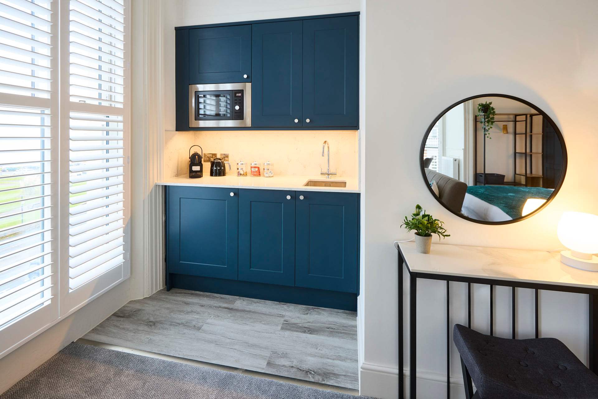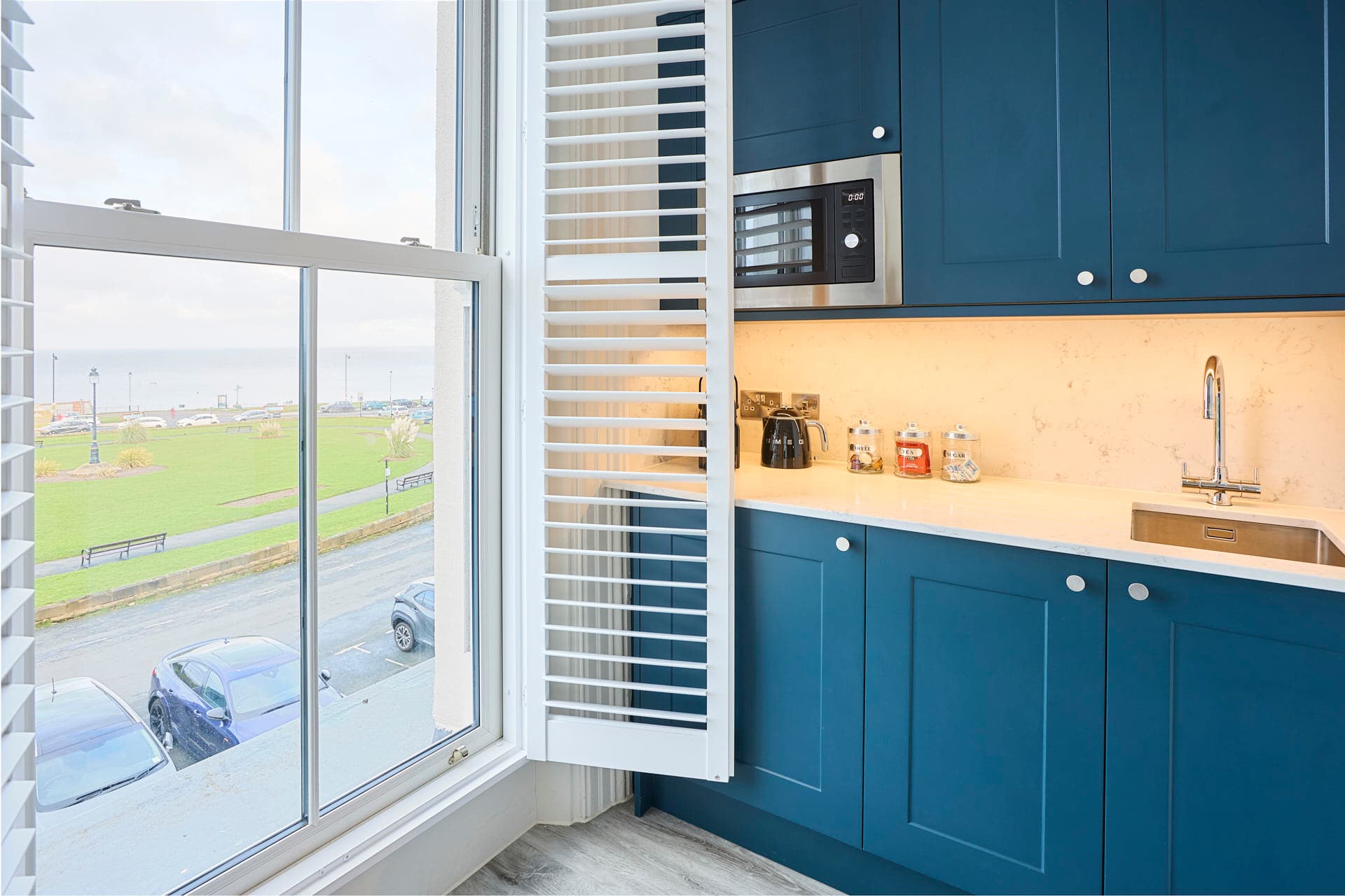 Apartment 3 at The Langley Apartments is a bright, modern studio that has been newly refurbished to an excellent standard. Neutrally decorated, it offers a fresh and welcoming feel, enhanced by soft coastal accents that create a calm and relaxing atmosphere. The open-plan layout maximises natural light, whilst the windows provide a lovely view of the sea - adding an extra touch of coastal charm and serenity. It’s the perfect place to unwind after a day exploring Whitby and its stunning surroundings. High-quality finishes and contemporary features throughout, from the sleek kitchenette equipped with modern appliances to the stylish bathroom complete with a practical walk-in shower. Thoughtfully chosen décor inspired by the nearby coastline brings warmth and character without detracting from the clean, modern aesthetic. Apartment 3 provides a peaceful retreat, beautifully combining high-standard refurbishment with timeless coastal appeal.