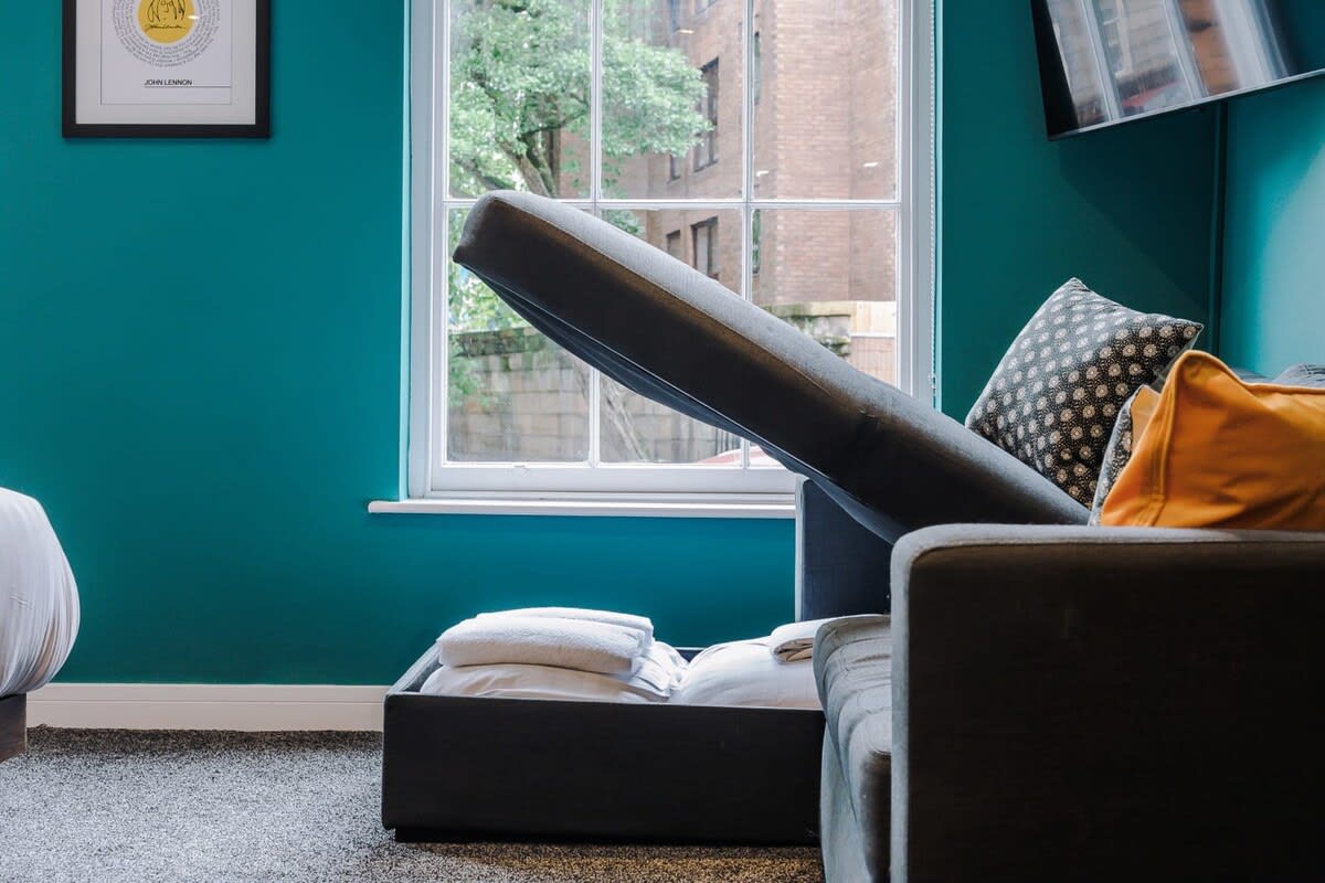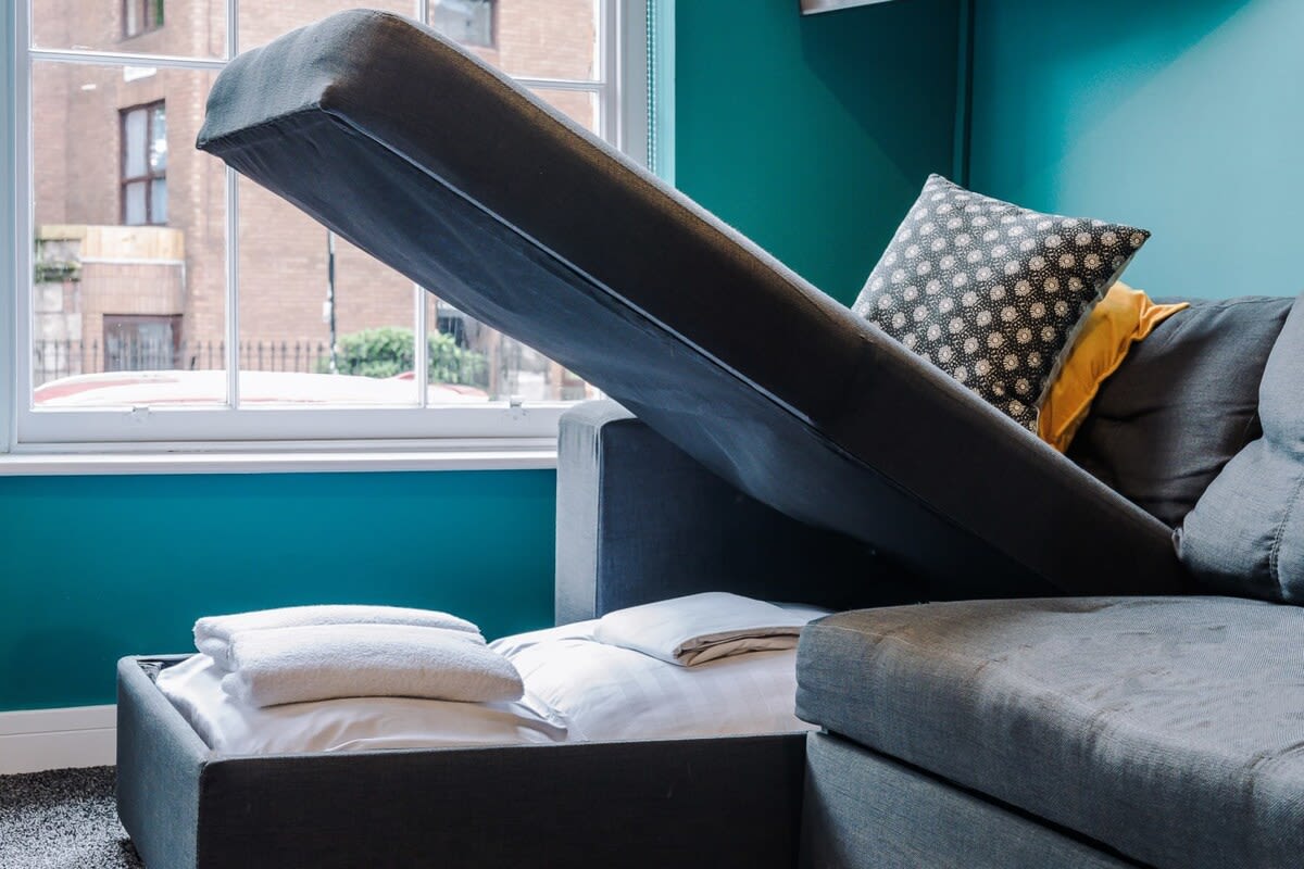Apartment Sleeps four Adults: Living room: • Fitted with a large Smart TV that has aerial channels. • 1 Sofa Bed that can sleep 2 Guests or 2 Children. Bedroom: • Fitted with a King Bed for 2 guests. Kitchen: • Fitted with Microwave, Kettle, a Coffee machine with Milk Frother, Oven, and so much more. Bathroom: • The Bathroom has a separate Standing Shower, Standard Sized Bath, Toilet and Basin. Please be aware that this apartment is within a Georgian townhouse located on a main road, with easy and direct access into the city centre, and has the original single glazed sash windows. These are a listed feature within the property, and certainly add to the charm. We, as hosts, are extremely proud of these features and are thrilled to be able to share these with our guests. However, we do kindly ask you to note that as the windows are only single glazed, you can expect a level of background noise from the nearby traffic.